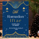 Gold and Blue Illustrative Ramadan Iftar Invitation.