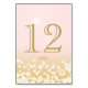 Blush pink and gold twinkle light effect design table number card to compliment matching wedding set.