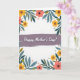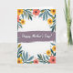 Designed with a white background framed by a thick border of stylized flowers and curling leaves, this card feels like a gentle garden hug ❤️. A wide horizontal band runs across the center in muted lavender-gray with a soft painted texture, giving the layout a calm, steady anchor. Centered on that band, the words “Happy Mother’s Day!” appear in white slanted lettering with a faint shadow that makes the message look slightly raised. Around the edges, golden-yellow blooms and coral-peach flowers with dark centers lean toward one another like close friends sharing a quiet moment 🌼. Rich green and teal-blue leaves weave between the blossoms, creating an intimate, cozy setting without looking crowded. Tiny dots and small abstract floral marks are sprinkled through the border, like little details you notice when you linger. The botanical frame features goldenrod petals, peach-toned blossoms, and layered green-to-teal foliage surrounding the lavender-gray center strip.