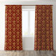 This floral-themed window curtain design features a gold and red vintage damask pattern.
