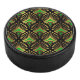 Gold and green Art Deco pattern on black Hockey Puck