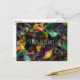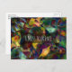 This vibrant, unique postcard is perfect for dropping a note to anyone you've been missing. The background was covered in a piece of digital artwork that features a kaleidoscopic pattern of golden yellows, burgundy, blues and greens. Over that is a partially-opaque black horizontal badge overlaying the center. The message, "I Miss Your Face" is rendered in a modern, casual font. Both the message and the font can be changed to whatever you'd like it to say. Likewise, with the overlay and background separate, you might even choose to enlarge or re-position those elements too. Enjoy!