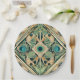 Art deco geometric seamless vector pattern. Gold and green peacock abstract feathers texture.