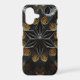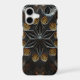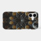 A stunning iPhone 17 Slim Fit case, featuring a complex "bio-fractal" design. The artwork centers on a deep navy starburst that transitions into intricate, shimmering gold and bronze textured clusters.