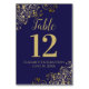Gold and Navy Blue Elegant Frilly Wedding Table Number