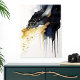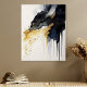 Add an artistic flair to your space with this gold and navy ink drip abstract wall art. The bold, fluid lines and cascading gold droplets create a sense of movement and elegance, drawing the eye to its luxurious design. Deep navy tones blend seamlessly with shimmering gold, providing a sophisticated balance of contrast and harmony. Perfect for modern interiors, this piece works beautifully in living rooms, bedrooms, or office spaces. Transform any wall into a statement of contemporary style and refinement.