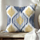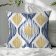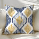 Gold and Navy Ogee Ikat Pattern Throw Pillow