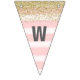 Banner with "bridal shower" wordings, faux gold glitter design and pink stripes pattern background.