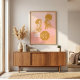 This wall art features hand-drawn gold jellyfish and a sea urchin layered over soft blush and peach color blocks for a modern coastal feel. The vintage-inspired linework adds texture while the warm palette keeps the look calm and contemporary. Ideal for beach houses, modern living rooms, or ocean-inspired spaces. A striking yet soothing statement piece for art-forward interiors.