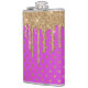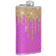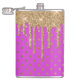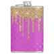 Glitzy drinking flask, with graphics of gold glittery paint dripping down a hot pink and gold polka dot background. Customize to add your own text. Great gift idea for weddings, birthdays and other special occasions.