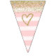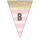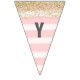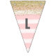 Banner with "welcome baby" wordings, faux gold glitter design and pink stripes pattern background.