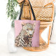 This tote bag pairs a lifelike leopard with a soft pink backdrop and faint palm leaf accents, creating a striking contrast that feels both wild and serene. This tote adds a little edge without losing its elegance—great for animal lovers, design buffs, or anyone who likes their style with a side of attitude.