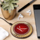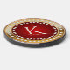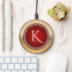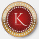 Gold Circle, white diamonds with a red background, and customizable monogram. Elegant glam design. Diamonds are just an image.