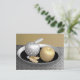 Gold and silver Christmas apples on a silver platter on a silver lace tablecloth with a gold damask background