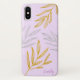 Features hand-drawn botanical leaves in gold and silver simulated foil, on a purple background. Personalize with a name.
