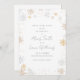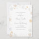 Winter-themed Save The Dates adorned with gold and silver snowflakes.