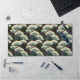Gold and Teal Patterned Japanese-inspire Fan Motif Desk Mat