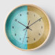Gold and turquoise shimmering iridescent texture clock