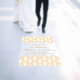 Gold and white art deco pattern wedding floor decals. The design features gold on white art deco inspired motif, bride's and groom's names and the date in gold. 1920's Gatsby style.
