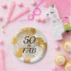 Confetti, streamers, gold and white balloons on these paper plates - 2 SIZES - are perfect for a birthday party, 50th birthday party, milestone birthday, 50th anniversary party, business party and more. All text, fonts, colors, sizes can be modified, just click the CUSTOMIZE button. See MATCHING items in our store.
