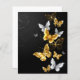 Gold, jewelry and white butterflies on black background. Golden butterfly.
