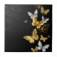 Gold, jewelry and white butterflies on black background. Golden butterfly.
