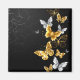 Gold, jewelry and white butterflies on black background. Golden butterfly.
