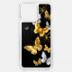 Gold, jewelry and white butterflies on black background. Golden butterfly.