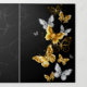 Gold, jewelry and white butterflies on black background. Golden butterfly.