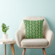 Fun throw pillow for all ages features gold and white intricate Celtic peace symbol pattern on green background
