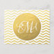 Classy and fashionable 3 letter script monogram using white text, with a background of a foil-effect chevron zigzag pattern print in gold and white, and a gold circle seal with your custom printed initials. Pretty and elegant for women, ladies and for her personal style.
