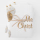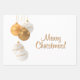 Decorative globes of gold and white make an elegant look as they hang asymmetrically from golden chords. You can change the text to read Happy Holidays, Seasons Greetings, Noel or whatever fits your needs.