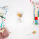 Decorative globes of gold and white make an elegant look as they hang asymmetrically from golden chords.
