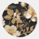 Gold And White Floral Pattern On Black Classic Round Sticker