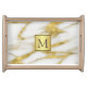 Entertain in style with this beautiful serving tray design featuring an exotic gold and white marble abstract pattern with gold monogram frame and custom monogram that you can edit with your desire initial or other text. If you prefer the tray without the monogram, you can delete both the initial and the gold square monogram frame.