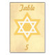 An excellent table seating card that is simply amazing, this design features a golden background displaying your table number gold font. A gold and white Star of David is in the center of the table card. Same design on front and black. Purchase yours today!
