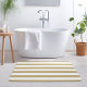 Custom bath mat with a preppy stripe pattern in neutral gold and white colors. Use the design tools to choose any background color, add your own text or upload photos to create a one of a kind design to match any bathroom decor.