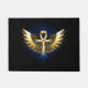 Golden Egyptian ankh with patterned, shiny wings on a black background. Magic symbol.
