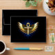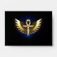 Golden Egyptian ankh with patterned, shiny wings on a black background. Magic symbol.