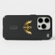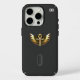 Golden Egyptian ankh with patterned, shiny wings on a black background. Magic symbol.