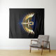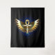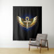 Golden Egyptian ankh with patterned, shiny wings on a black background. Magic symbol.