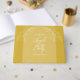 This wedding guest book is shown in an arch style and features a floral design. Shown in a gold color. Great day of stationery for your wedding. Customize the text on the front and change the text on the side panel. Use the template to create your own gold arch style floral wedding guest book.