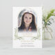 An elegant personalized order of service funeral memorial program featuring a gold arch and watercolor greenery foliage. Designed by Thisisnotme©