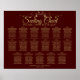 Beautiful wedding seating chart for 17 tables. Features a simple yet elegant design of gold lettering on a chocolate brown or auburn colored background with a vintage faux foil filigree or flourish border. Make it easy for your guests to find their seats at your reception.