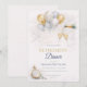 Gold and soft gray balloon design with champagne pour detail and subtle textured background, paired with refined script and serif typography. Designed for retirement dinner gatherings and evening celebrations where a polished, coordinated look fits a formal dining setting.