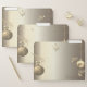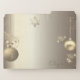 Elegant gold Christmas balls, stars, and snowflakes on a champagne background.