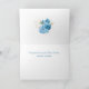Elegant wedding greeting card done in a blue satin looking background, with graphics of a golden banner with blue and gold flowers. Personalize all the text, inside and on the front, to suit your needs.