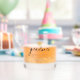 This chic graduation glass features handwritten script lettering with a graduation cap in faux gold glitter. Personalize it for your needs. You can find matching products at my store.
