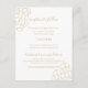 Gold baseball wedding reception information card includes time line of events, directions and accommodations and website information, with plenty of open space for additional text.