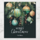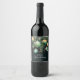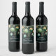 Elegant Christmas holiday party wine bottle labels feature pine branches, green and gold Christmas ball ornaments and ribbons on a black background with your details in chic lettering, perfect for your festive holiday gathering or for your gift giving.